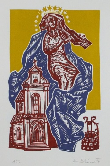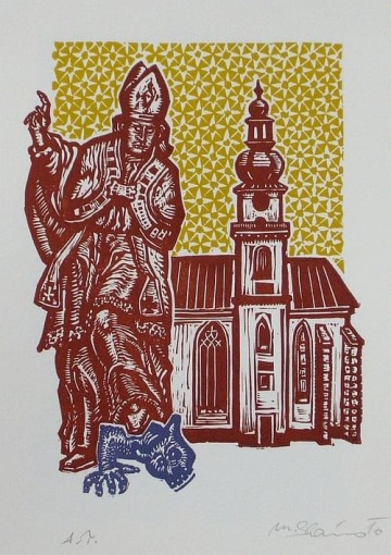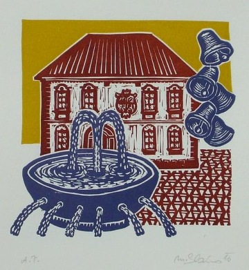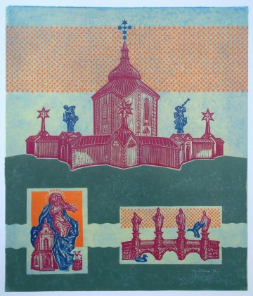 Nové Město na Moravě; linoryt pro pamětní list Nové město na Moravě; 2021